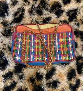 Vintage 80’s Multi Colored Woven Leather Cross Body Bag With Chain Strap