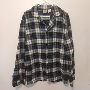 LL Bean Adult Mens L Plaid Flannel Pajama Top Button Up Shirt