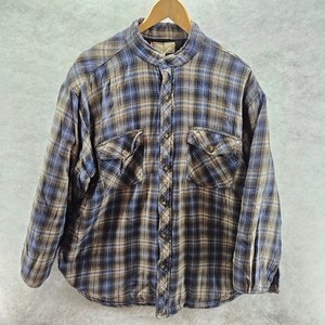 Levi's Mens Flannel Shacket Plaid Quilted Lined Button Up Medium Blue Tan