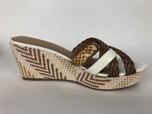 Marc Joseph Woven Snake Print Wedge Sandals White Brown US Size 9 Euro 40 New