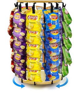 Chip Rack Display Stand, 5 Tiers 40 Clips Display Stand, 360°Rotating Wooden ...