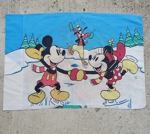 Vintage Disney Pillowcase bedding with Mickey, Minnie & Goofy Skating, 2 sided.
