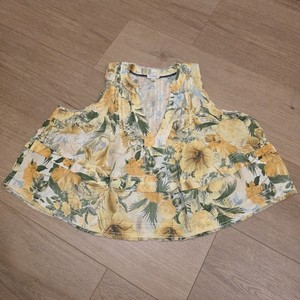PILCRO By Anthropologie Raw-Edge 100% Linen Swing Tank Womens Size M Floral Boho