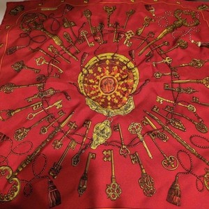 Hermes Carré 45 LES CLES Red Silk Scarf W/Tags No Box Used.