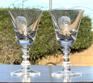 2 Vintage Rose by Fostoria Cut Elegant Claret Wine Glasses Stems 4.75" Cut #827