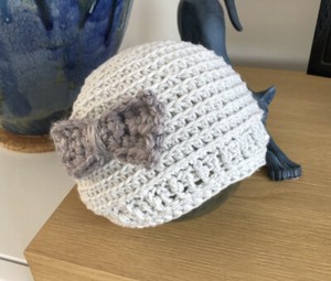 Baby girl crochet beanie hat, Bamboo yarn, detail bow all handmade 0-12 months
