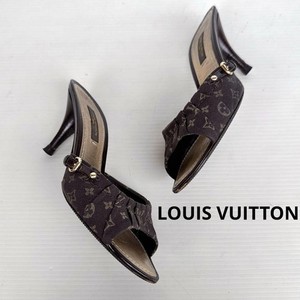 LOUIS VUITTON Mules Sandals Heel Monogram Canvas Brown EU35 US5 Japan F/S USED