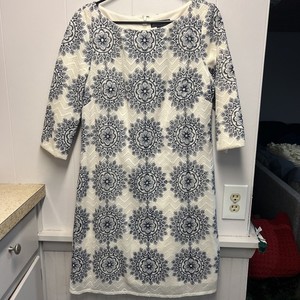 Jessica Howard Blue 3/4 Sleeve Crochet Lace Dress womens size 12 Cream W/ Navy