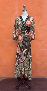 NWT Farm Rio Anthropologie Amorina Floral Bird Wrap Dress Maxi Boho Tropical xs