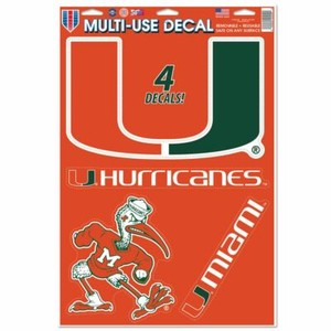 MIAMI HURRICANES 4-PACK MULTI USE REMOVABLE REUSABLE DECALS NEW WINCRAFT 🌀