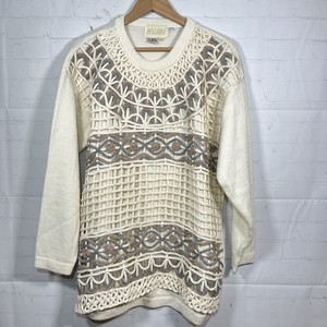 Vintage Belldini Wool Blend Latticed Overlay Sweater Womens Size Large Cream