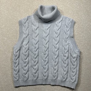 House of Harlow 1960 Women's L Gray Sleeveless Turtleneck Cable Sweater