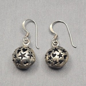 VTG Sterling Silver Star Heart Cutout Drop Earrings 1.25" Celestial Dangles 6.6g