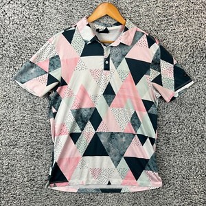 Yatta Golf Shirt Mens Small Pink White Gray Geometric Polo Performance Stretch S