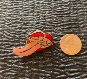 Mystery Pin Red Lips Teeth Long Pink Tongue Silver Markings Odd 236681 Jewelry