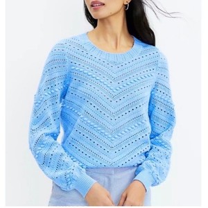 LOFT Womens Bobble Pointelle Powder Blue Knit Sweater Cotton CottageCore Sz L