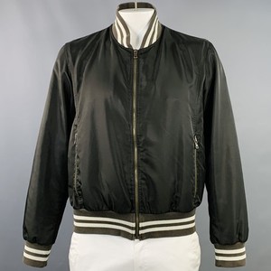 DOLCE & GABBANA Size L Black Brown Cream Nylon Zip Up Bomber Jacket
