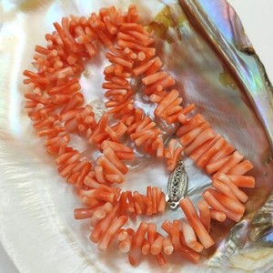 Vintage 2 Strand Necklace Coral Necklace beaded Necklace silver 925