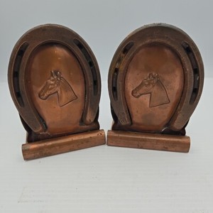 Vintage Craftsman Co Horseshoe/Horse Copper Tone Metal Bookends