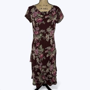Max and Cleo Silk Babydoll Dress Womens Sz 10 Artsy Floral Wedding Guest Y2K