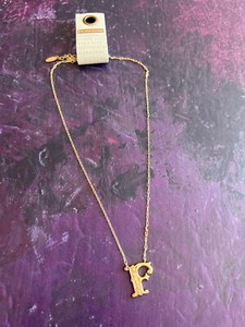 Anthropologie Western F Monogram Necklace 14k Gold Plated Letter Gift Idea