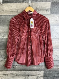 Bad Handwriting ASOS Womens Shirt Blouse Size Small Burgundy Velvet Striped