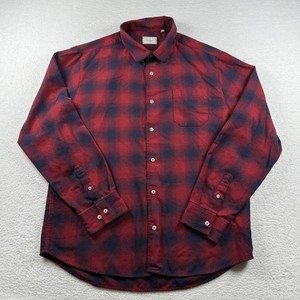 Thomas Dean Men's Large Long Sleeve Button Up Plaid Checkered Shirt Pima Cotton