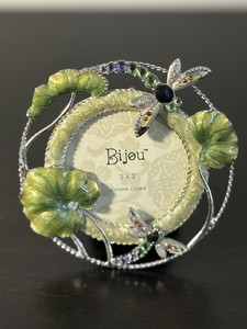 Bijou Enameled Dragon Fly Lily pad genuine Crystal 3x3 Pewter Picture Frame New