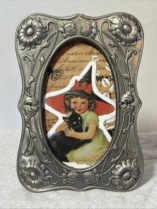 Vintage Art Nouveau Pewter Picture Frame Flowers Silver Metal Embossed 3.25”