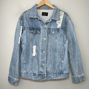 Love Tree Jacket Size Small Denim Light Blue Jean Coat Distressed Trucker Boho