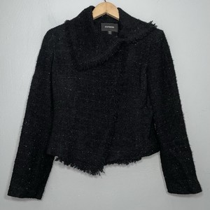Express Tweed Jacket Size 5 6 Black Silver Wool Fringed Moto Blazer Whimsigoth