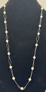 Signed Lauren By Ralph Lauren Faux Pearl Silver Tone Long Necklace- Rare