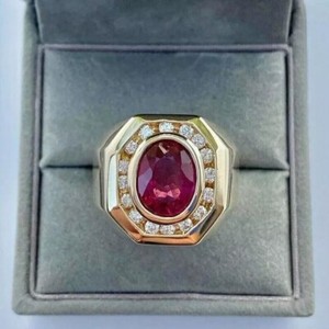 2.80Real Ruby & Round Diamond Women Ring 14K Solid Yellow Gold With Certificate