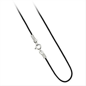Sterling Silver Black Leather Cord Chain Necklace 30"