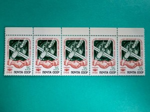 Russia Stamps SC# 2835a Coat of arms & Satellites strip of 6 (folded) MNH 1963