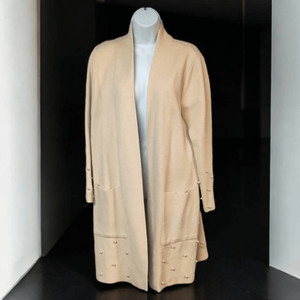 Zara cream long cardigan L sweater pearl accent French career chic minimalist
