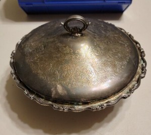 Vintage Silver plated Serving Dish With Lid, Etched Design, 3 Footed