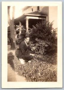 African American Original Snapshot Photograph Black Man Bending Down 2.5x3.5
