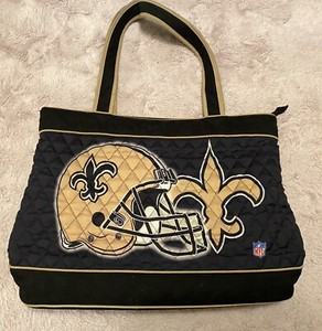 VTG New Orleans Saints Purse/Tote/Travel Bag, Black And Gold Quilted Material