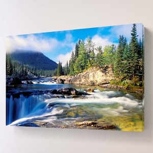 Nature Green Forest Waterfall Mountain Lake Canvas Wall Art Picture Framed Print