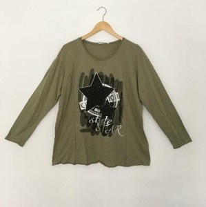 Plus Size Khaki Long Sleeve Top with Motif on Front Sizes 18-26