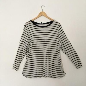 Plus Size Black White Striped Long Sleeved Top Crew Neck