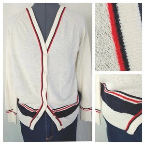 Vintage Designer's Originals Ivory Cardigan w Red & Blue Accents 38" Bust Sz MD?