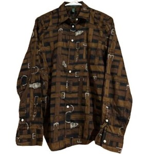 Lauren Ralph Lauren Women’s Brown Multi Equestrian Print Button Down Shirt Sz-M