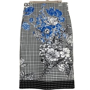 LABEL by 5 twelve Prince of Wales Check Floral Business Office Pencil Skirt Sz-M
