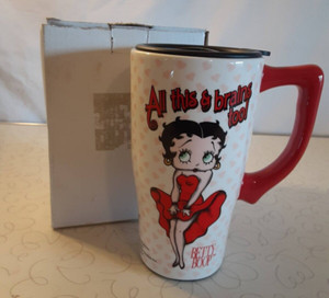 Ceramic Travel Mug Betty Boop 16 oz Black Red NIB