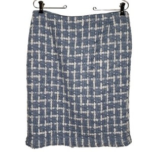 Lafayette 148 Straight Skirt Size 8 Blue White Check Zip Vent Lined Wool Mohair