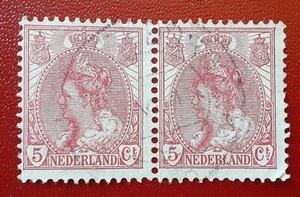 NETHERLANDS 1899 5c Used Pair Wilhelmina Mi 54A Scott 65 VF 5400