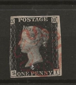 QV 1840 1d black SI 3 margin red MX used (SG 2) Cat £375