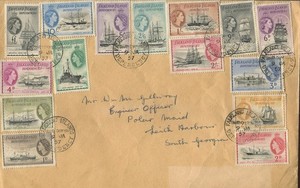 FALKLAND ISLANDS 1954 SHIPS TO £1 G26/G40 FINE USED ON COVER